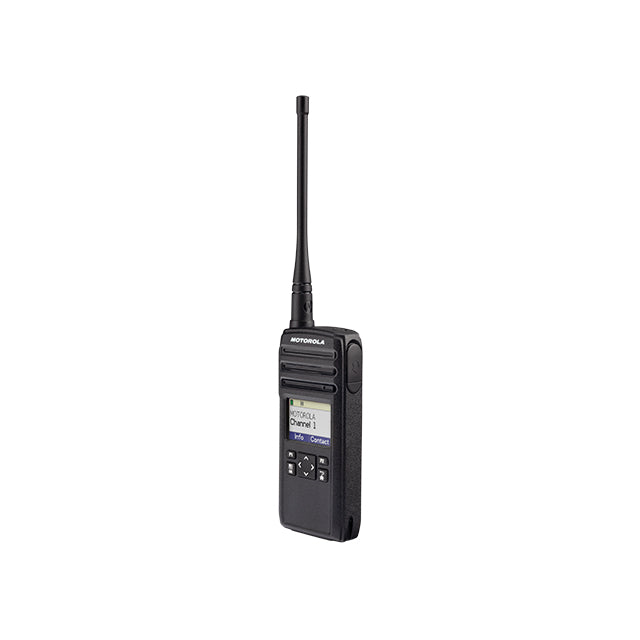 Motorola’s DTR series radios are now more reliable than ever - enabling interference free, private communications to help your team stay focused while keeping communications private. With its slim, rugged design the DTR700 digital two-way radio is equipped with 50 channel capacity. It is IP54 rated and operates at 900 MHz. A full-graphic color display and intuitive navigation menu helps you quickly locate all radio features. The DTR700 offers flexible communication options, including Digital One-to-One Calling and Digital One-to-Many Calling. The DTR700 also provides great coverage, long battery life and digital audio quality that is loud and clear audio wherever you are.