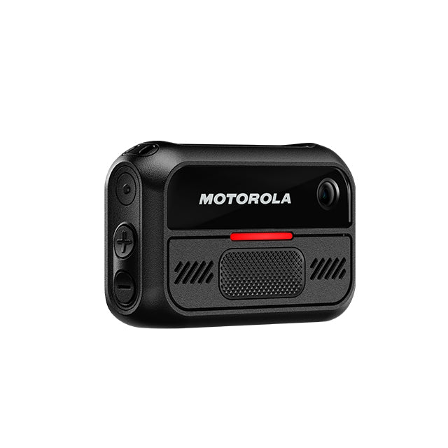 The V200 is a sophisticated body camera featuring livestream recording and GoLive Audio, enabling employees to quickly connect with a supervisor or security agent while capturing footage from every angle. An intuitive top display shows connectivity to WiFi and the security monitoring center, as well as battery levels.